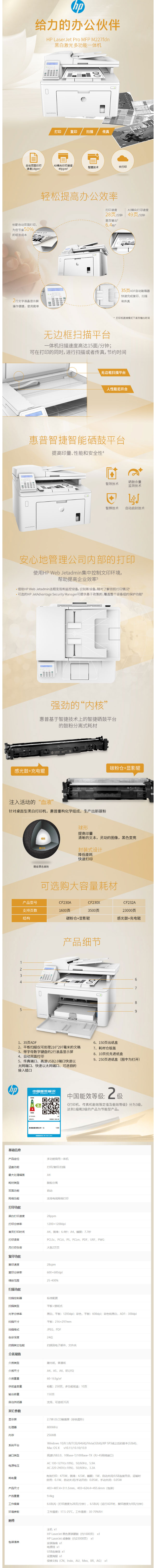 惠普(HP)LaserJet Pro MFP M227fdn黑白多功能激光一体机/数码多功能一体机 A4打印